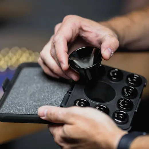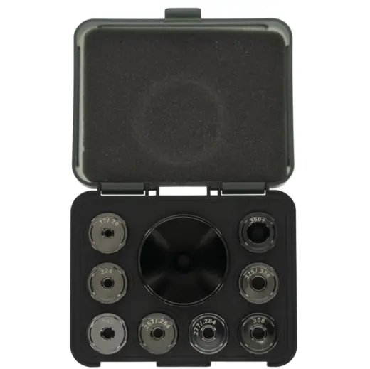 Die acht Adapter mit Kalibergravur und Dichtungs-O-Ring garantieren einen festen, präzisen Sitz.
