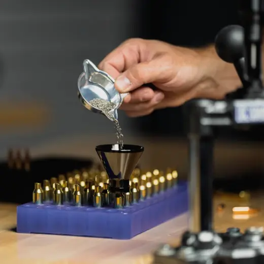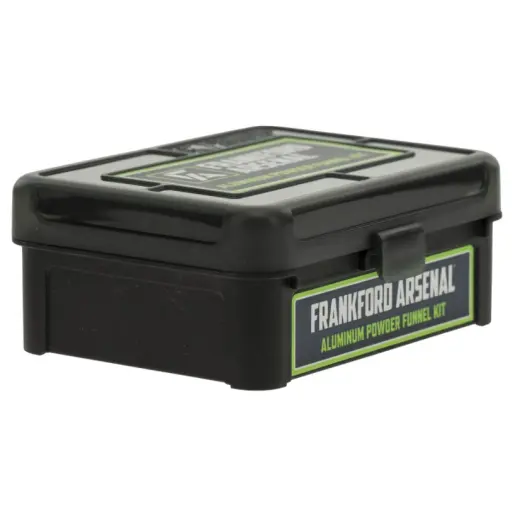 Der Aluminium-Pulvertrichter von Frankford Arsenal ermöglicht präzises und sauberes Befüllen von Hülsen ab Kaliber .17. Die glatte, schwarze antistatische Oberfläche verhindert das Haften von Pulver und sorgt für eine saubere Ladeumgebung sowie gleichmäßige Pulverladungen.