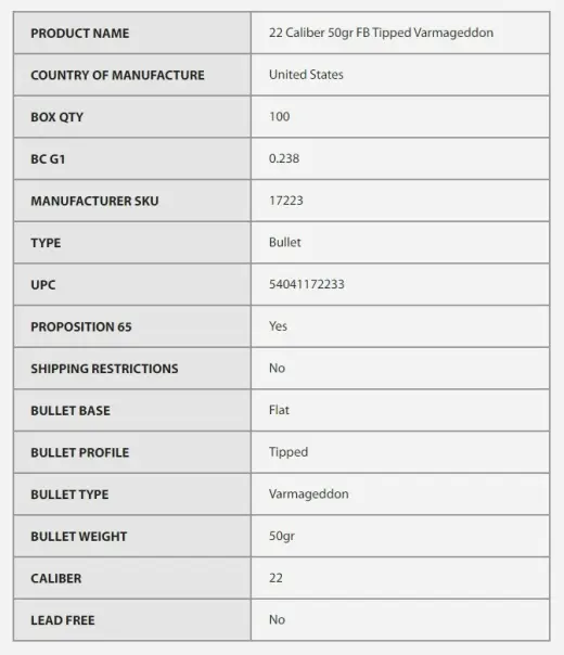 - Varmint Jacket Wall Design - Die gleichmäßige, allmähliche Mantelverstärkung in der Mitte des Geschosses sorgt dafür, dass das Varmageddon-Geschoss bis zum Aufprall intakt bleibt – bei jeder Geschwindigkeit.