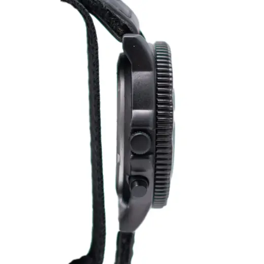 Das Gehäuse der Uhr ist aus Edelstahl gefertigt und mit einer schwarzen, stoßfesten Beschichtung versehen. Das Zifferblatt ist durch ein gehärtetes, kratzfestes Mineralglas geschützt.