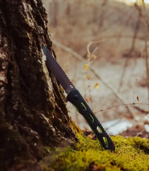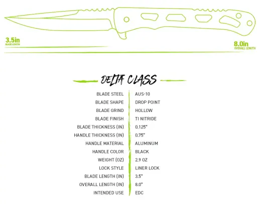 Die Drop-Point-Klinge ist aus hochwertigem und langlebigem AUS-10-Edelstahl mit grauem Finish gefertigt. Der Griff ist mit einer schwarzen Aluminiumgriffe mit phosphorgrünen Einsätzen und rutschfester Textur in einem eleganten, zeitlosen Design ausgestattet.