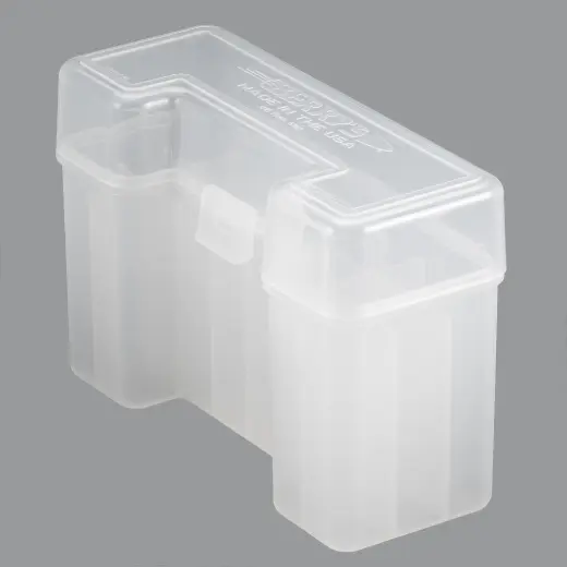Hochwertige Kunststoff-Munitionsbox vom US-Hersteller Berry’s, geeignet zur Aufbewahrung und zum Transport von 20 Patronen.