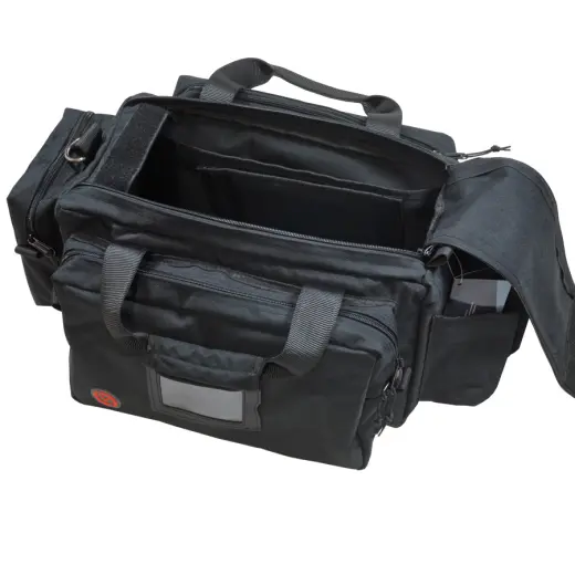 - Hauptfach für Pistolen, Munition, Kopfhörer, etc. mit verstellbaren Klett-Trennwänden