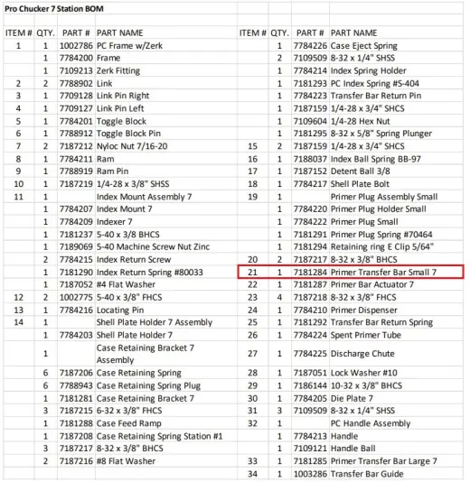 Primer Transfer Bar Small 7 (#7181284). Originalersatzteil Nr. 21 für die progressive Wiederladepresse RCBS PRO CHUCKER 7 (#88911).