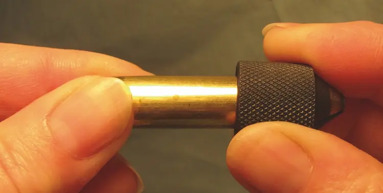 Using Lee Trimmer is easy and needs no further explanation. We either trim the cartridge case by hand, or clamp the case holder in a cordless drill or screwdriver. After trimming the neck, we can clean the cut by removing the inside and outside burrs using the Lee Chamfer Tool, by uniformly turning it in your fingers. The neck of the cartridge case must be clean without burrs, both from the outside and inside.