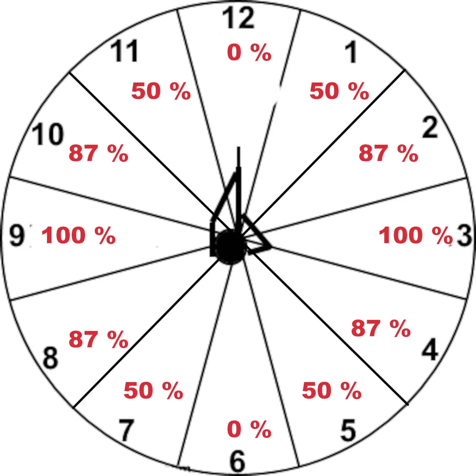 This chart allows you to estimate effective wind strength based on direction. Maximum effect occurs at 3 and 9 o’clock; minimum at 12 and 6 o’clock.