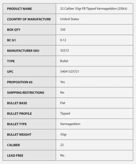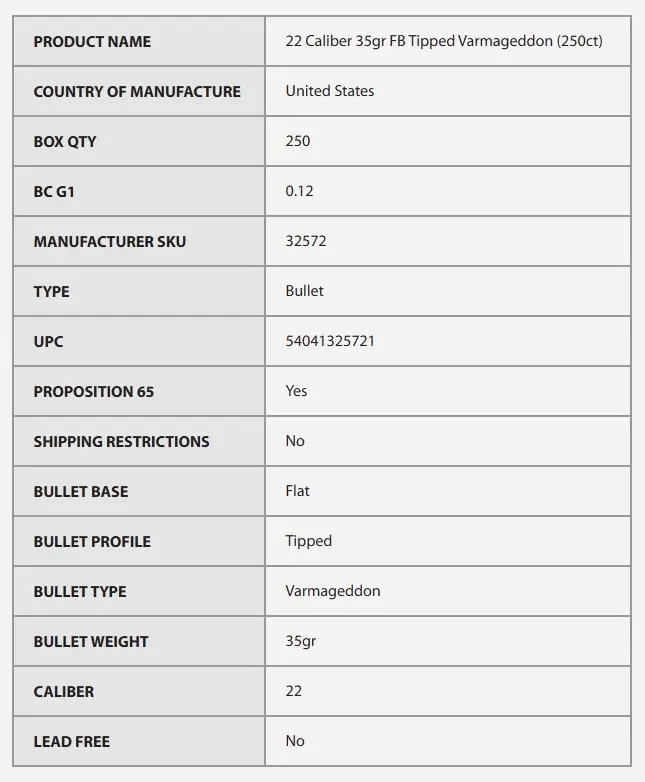 Les projectiles Varmageddon sont fabriqués avec un noyau en alliage de plomb et présentent une chemise en alliage de cuivre conçue pour résister à des vitesses élevées tout en se dilatant immédiatement à l'impact. Les projectiles Varmageddon sont fabriqués en utilisant un processus très efficace, offrant la qualité légendaire et la précision de Nosler à un prix économique.