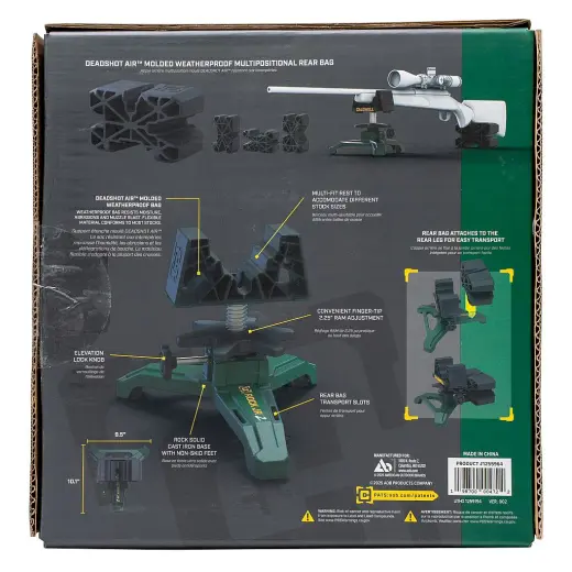 Les caractéristiques du support de tir comprennent une base en fonte solide, un réglage précis de l'élévation, un sac avant universel pour différentes formes de crosse et un sac arrière avec 4 options de hauteur pour un tir et une visée précis.