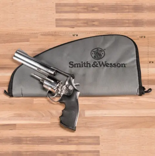 Étui de protection de Smith&Wesson. Le modèle LARGE est conçu pour ranger et et transporter des pistolets de plus grande taille. Un rembourrage souple et une fermeture à glissière sur toute la longueur une manipulation sûre et un accès facile.