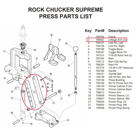 Linkage Arm (#7788902). Pièce de rechange pour levier d’action. Pièce d’origine pour presse RCBS Rock Chucker Supreme (#9356).