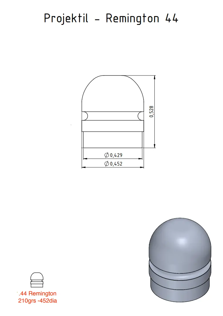 Hornof kokila ráže .44 Remington dia. 452, 210grs