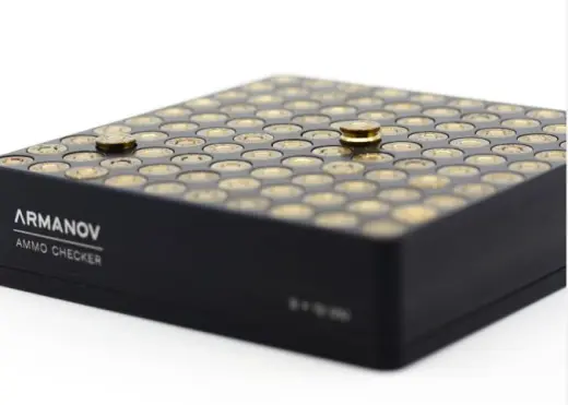 Armanov lőszerellenőrző 100db töltényhez a deformált .40 S&W töltények gyors előkereséséhez. Kemény műanyag tokot és tisztítókendőt tartalmaz.