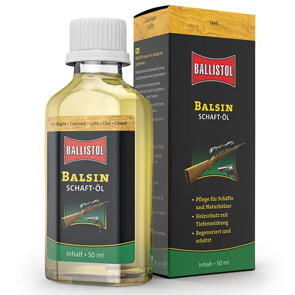 Balsin Stockoil è l'ideale per le calciature in legno di ogni tipo, robuste e deteriorate: un must nelle mani dell'armaiolo e del proprietario di armi. Balsin Stockoil ridona una lucentezza setosa anche ai calci di legno vecchi, fragili e robusti.