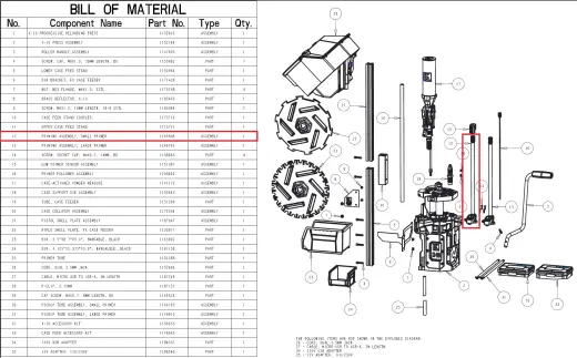 Gruppo di innesco - Innesco piccolo (#1149908). Pezzo di ricambio originale n. 12 per la pressa di ricarica progressiva Frankford Arsenal X-10.