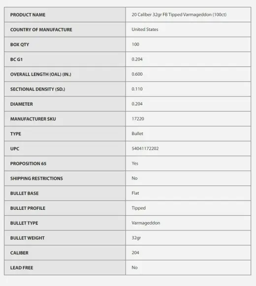 I proiettili Varmageddon sono realizzati con un nucleo in lega di piombo e presentano un mantello in lega di rame progettato per resistere ad alte velocità e per espandersi immediatamente all'impatto. I proiettili Varmageddon sono fabbricati utilizzando un processo altamente efficiente, offrendo la leggendaria qualità e precisione Nosler a un prezzo economico.
