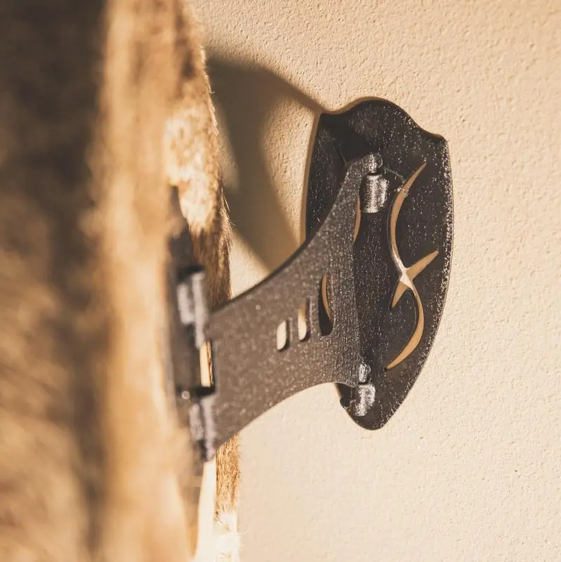 Supporto Skull Hooker per trofei tassidermici con portata fino a 16 kg. Braccio girevole a 180° per posizionamento ideale. Struttura in acciaio robusta con finitura marrone a polvere.