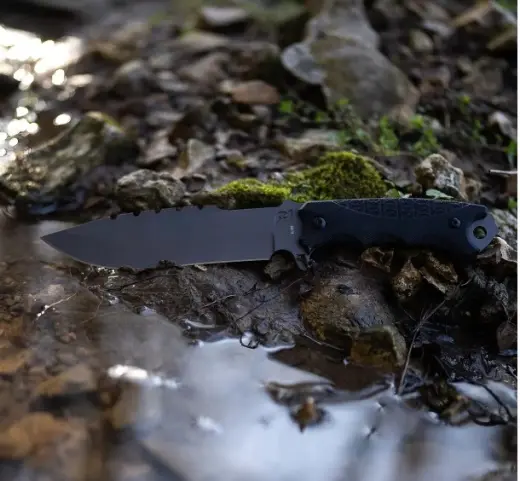 Čepel nože ve tvaru Drop point je vyrobena z velmi kvalitní a odolné nerezové oceli AUS-10. Rukojeť z velmi odolného materiálu G10 je opatřena protiskluzovou texturou, která zajišťuje pevný úchop. Na konci rukojeti je otvor pro zavěšení.