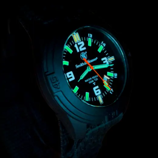 Wytrzymały zegarek Smith & Wesson Soldier Tritium H3 został zaprojektowany do użytku wojskowego i outdoorowego, gdzie niezawodność i precyzja są kluczowe. Dzięki szwajcarskiemu źródłu światła Tritium H3 zapewnia nieprzerwaną widoczność tarczy nawet przez 20 lat, nawet w całkowitej ciemności.