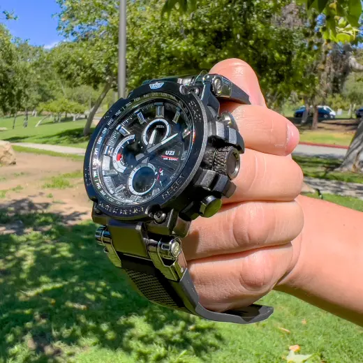 Trwały i wygodny zegarek do codziennego noszenia. Dzięki regulowanemu paskowi z miękkiej gumy, ten sportowy zegarek jest wygodny w noszeniu i nie jest ani zbyt ciasny, ani zbyt luźny na nadgarstku. Obudowa zegarka wykonana jest z solidnego tworzywa ABS, a szkiełko jest odporne na zarysowania. Wodoodporność do 30M spełnia codzienne potrzeby w zakresie wodoszczelności. Spód zegarka wykonany jest ze stali nierdzewnej 304, co zwiększa jego wodoodporność. Dzięki podwójnemu wyświetlaczowi można ustawić dwie strefy czasowe.