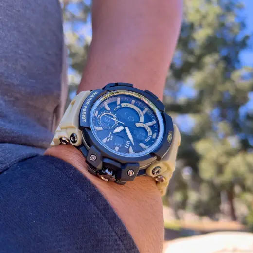 Trwały i wygodny zegarek do codziennego noszenia. Dzięki regulowanemu paskowi z miękkiej gumy, ten sportowy zegarek jest wygodny w noszeniu i nie jest ani zbyt ciasny, ani zbyt luźny na nadgarstku. Obudowa zegarka wykonana jest z solidnego tworzywa ABS, a szkiełko jest odporne na zarysowania. Wodoodporność do 30M spełnia codzienne potrzeby w zakresie wodoszczelności. Spód zegarka wykonany jest ze stali nierdzewnej 304, co zwiększa jego wodoodporność. Dzięki podwójnemu wyświetlaczowi można ustawić dwie strefy czasowe.