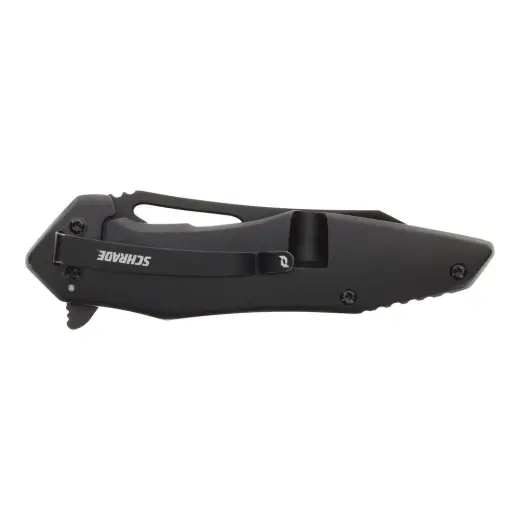 Zavírací nůž Schrade s odolnou hliníkovou rukojetí, technologií UltraGlide a čepelí typu Wharncliffe, která se výborně hodí k sebeobraně. Nůž je vybaven kapesním klipem.