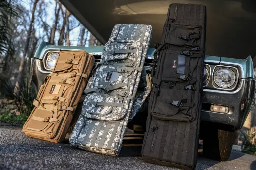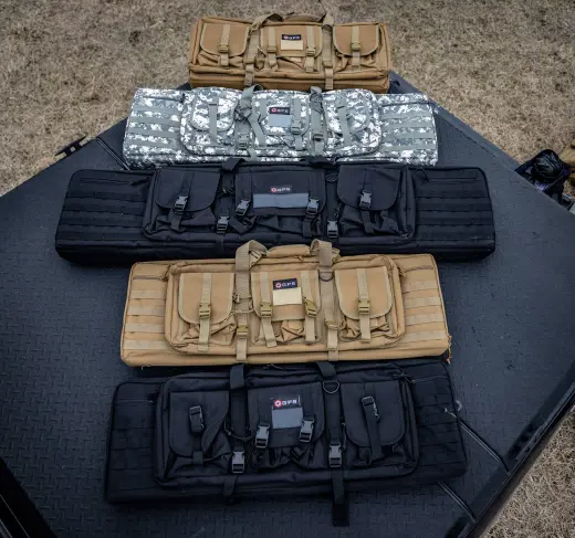 Transportní taška na 2 dlouhé zbraně do 100 cm s dostatečným prostorem pro uložení 2 pistolí, zásobníků a dalšího příslušenství. Uzamykatelný zip, nastavitelné polstrované zádové popruhy.