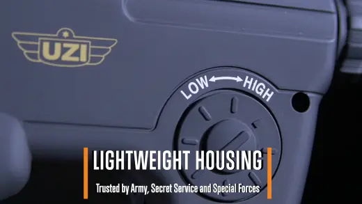 - Provedení: Černá barva, žluté logo UZI, pogumovaná úprava