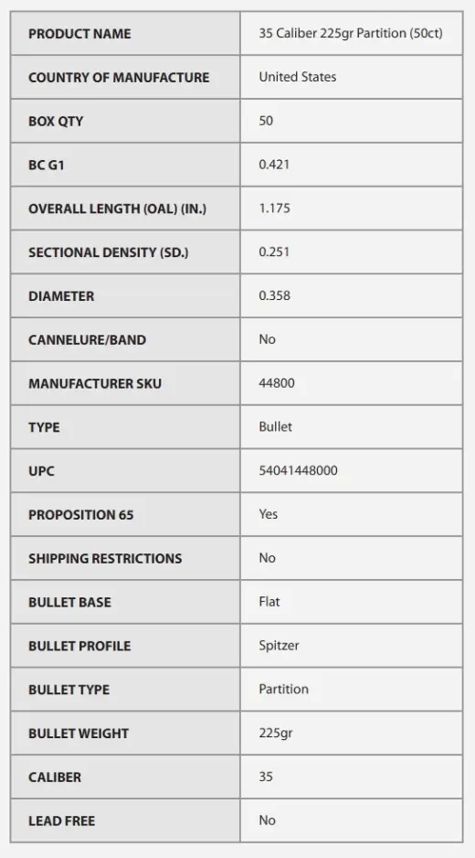 Střely Nosler Partition .35 Cal, dia .358, 225grs (14,5g). SKU: 44800