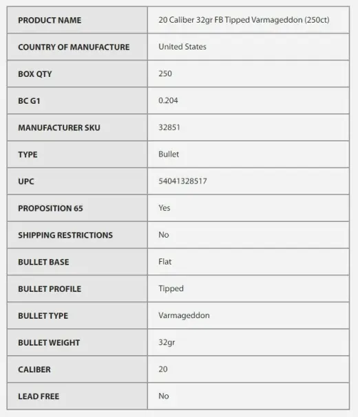 - Flat Base Bench rest accuracy out of a varmint bullet - Aerodynamicky efektivní tvar poskytuje excelentní letové charakteristiky při široké škále rychlostí.