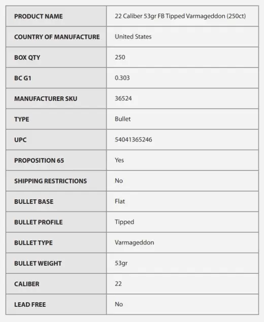 - Flat Base Bench rest accuracy out of a varmint bullet - Aerodynamicky efektivní tvar poskytuje excelentní letové charakteristiky při široké škále rychlostí.