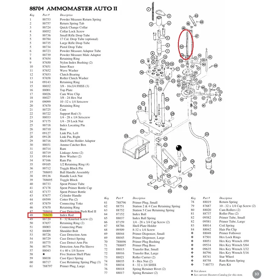 RCBS Index Rod (#788690). Originální náhradní díl pro přebíjecí lis RCBS Ammomaster Auto II.