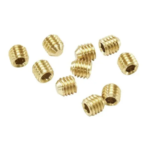 RCBS Brass Setscrew 10/32 x 3/16 FP. Náhradní mosazné zajišťovací šroubky pro pojistné kroužky matric RCBS. Balení obsahuje 10 ks. (RCBS BRASS SETSCREWS DIE LOCK RINGS).