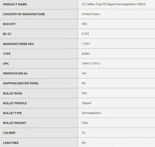 - Flat Base Bench rest accuracy out of a varmint bullet - Aerodynamicky efektivní tvar poskytuje excelentní letové charakteristiky při široké škále rychlostí.
