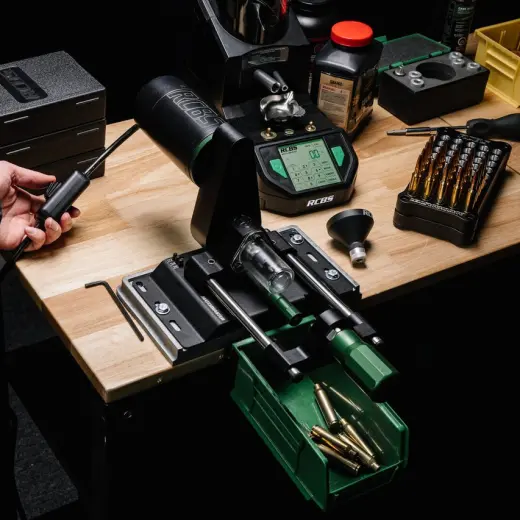 - Montáž: lze snadno připevnit na RCBS Accessory Base Plate (není součástí) nebo přímo na pracovní stůl