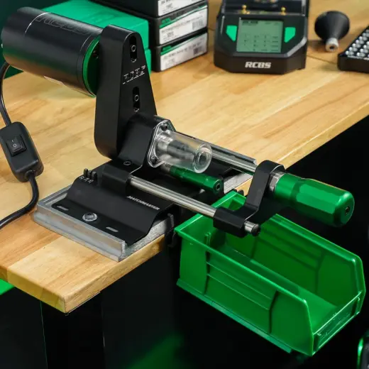 Elektrický zkracovač nábojnic pro ráže .22–.30. Zkracuje a sráží vnitřní i vnější hranu krčku nábojnice v jednom kroku díky 3cestné řezné hlavě. Mikrometrické nastavení délky zkrácení nábojnice.